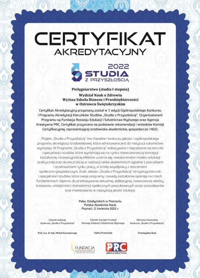 „Pielęgniarstwo to jeden z najbardziej pewnych i przyszłościowych zawodów, dający możliwość podjęcia pracy zaraz po ukończeniu studiów, gwarantujący wysokie zarobki oraz szeroki wybór miejsca pracy. To zawód zaufania publicznego przynoszący duży prestiż i szacunek. Ratowanie ludzkiego życia i niesienie ulgi w cierpieniu to praca, która daje dużą satysfakcję, której nie można żałować.”